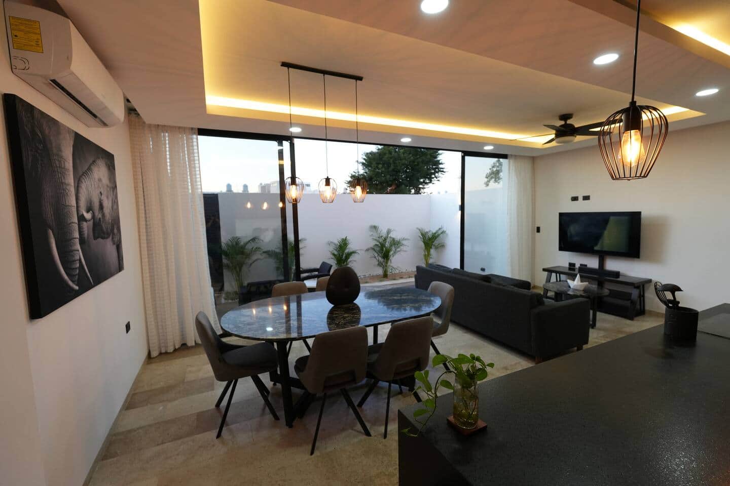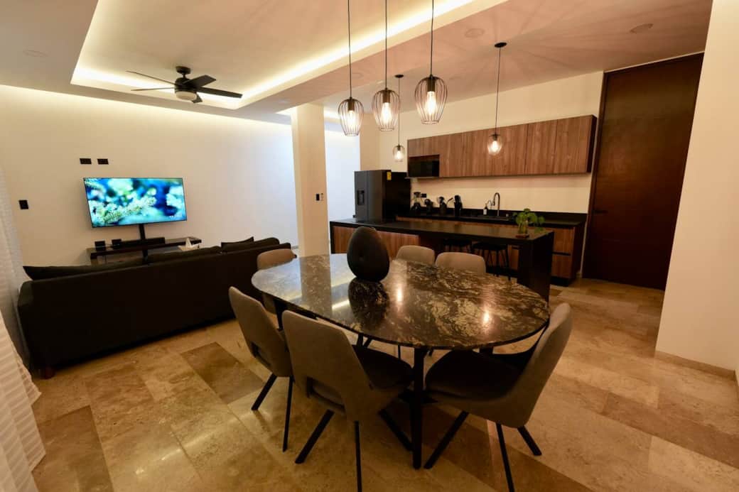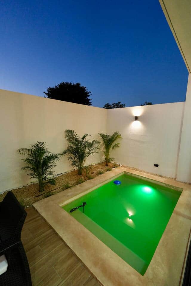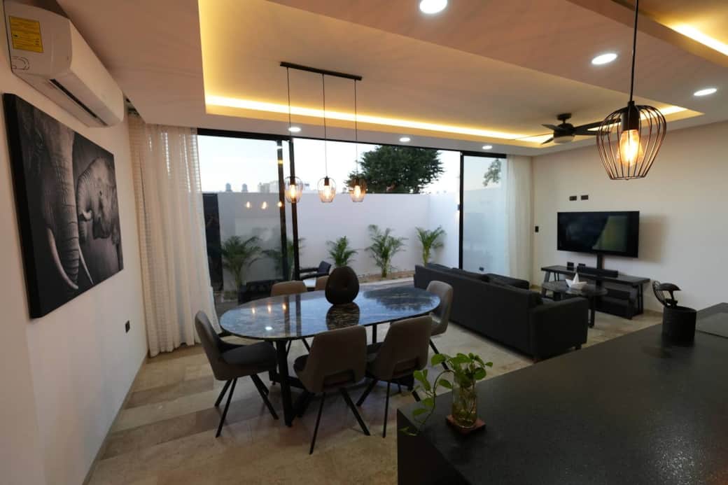 Experimenta la escapada perfecta a Merida en esta impresionante casa adosada con piscina privada y total privacidad. Disfrute de Internet de alta velocidad, pisos de mármol de lujo y muebles elegantes y de alta calidad. La casa está totalmente equipada con todo lo necesario, desde una cocina completa hasta televisores inteligentes. Con tres amplios dormitorios, cuatro baños, aires acondicionados y estacionamiento para dos coches, es el lugar ideal para relajarse y crear recuerdos inolvidables a solo minutos de la playa.